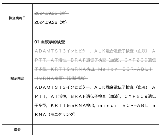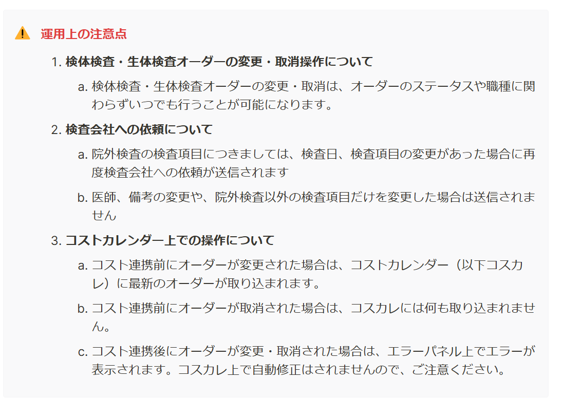 今までは、作成後の検体検査・生体検査オーダーは検査日のみ変更が可能となっておりました。
