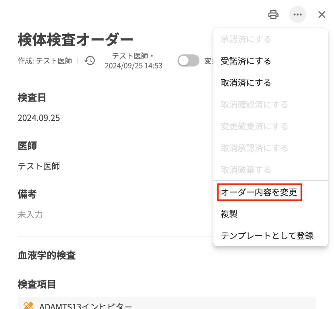 今回の検体検査・生体検査オーダーの改修で、スタッフアカウントにおいてもオーダーの変更・取消が可能になります。修正したオーダーは、代行入力同様に承認依頼が飛びますので、医師の方はご承認をお願いします。