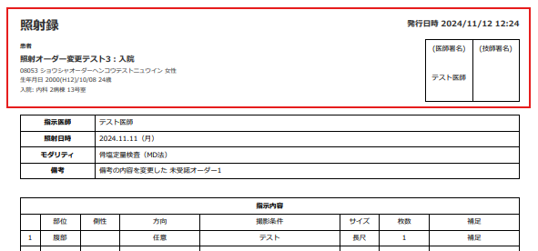 照射録の患者情報部分のレイアウトを変更しています。表示される情報に変更はありません。