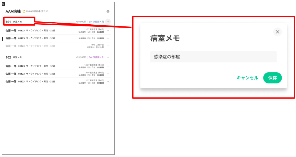 各病室に「病室メモ」を設定できます