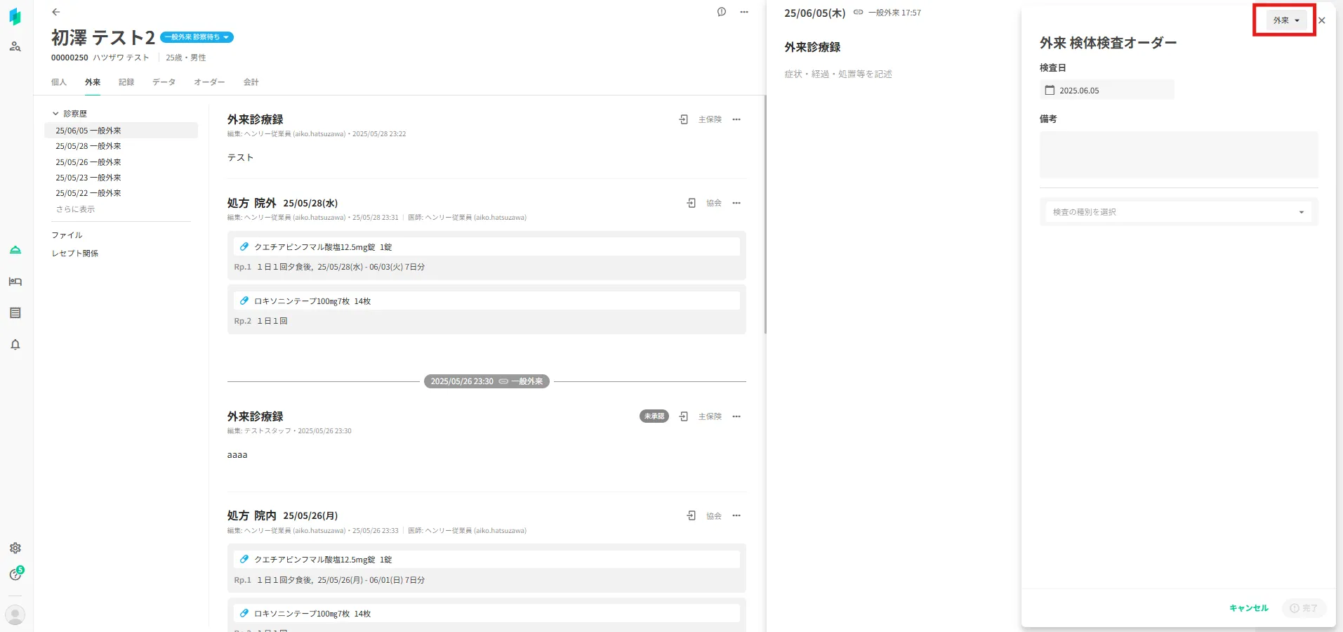 切り替えられるのは、外来オーダー編集中のみです。入院オーダーを編集中に外来オーダーに切り替えることはできません。(参考:外来オーダーと入院オーダーの作成方法の違いは何ですか?)