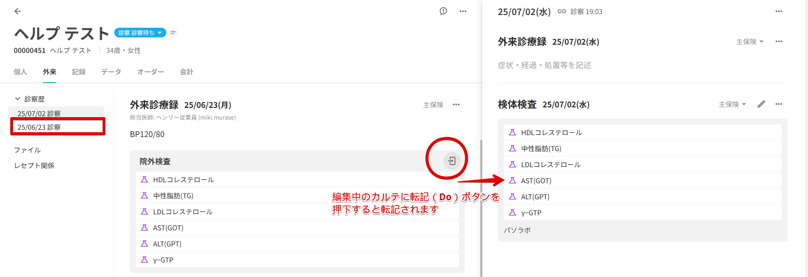 外来診療録へ転記(Do)されます