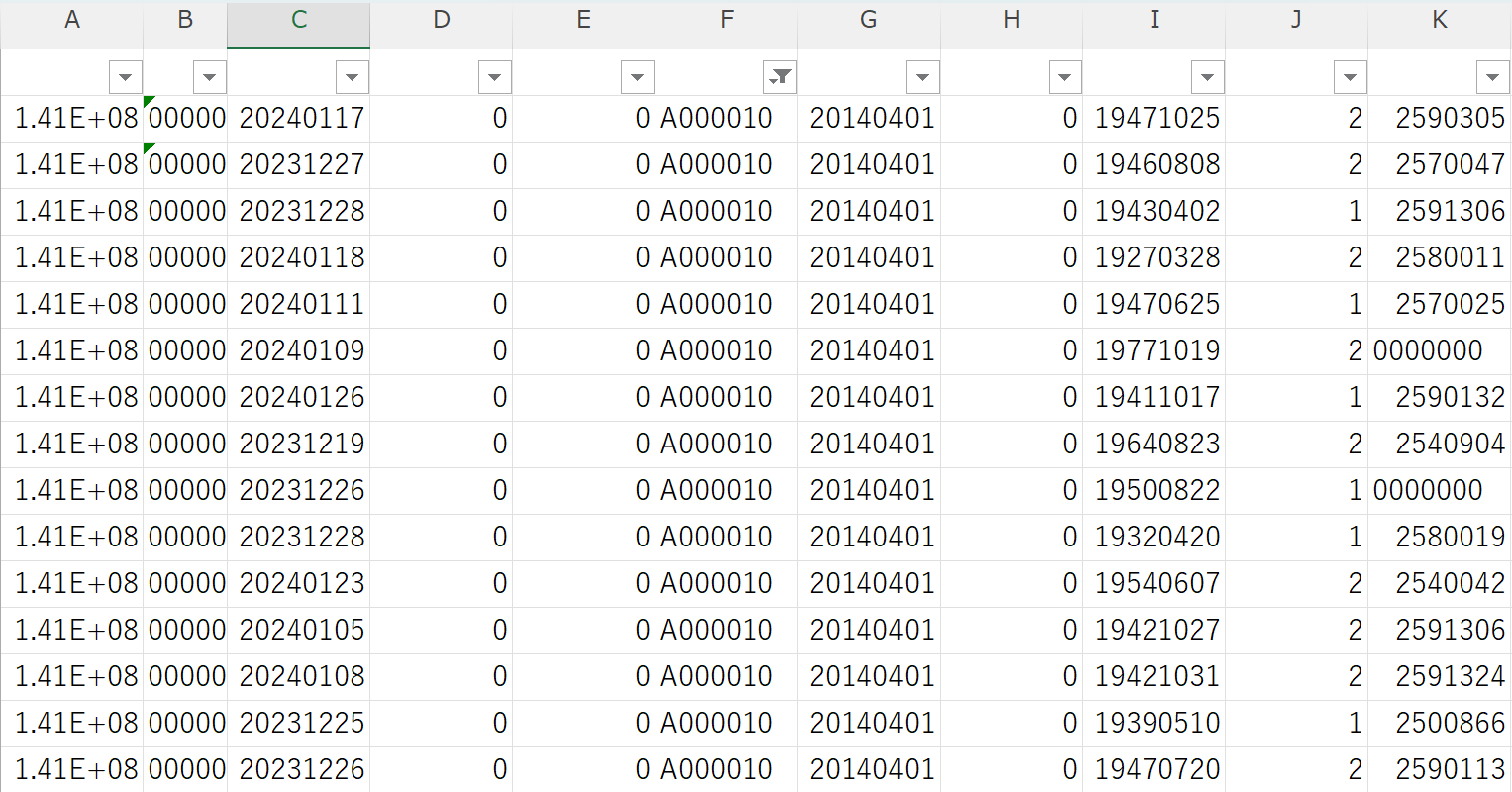 (Excelの1行目を追加してフィルターをつけることをおすすめします)