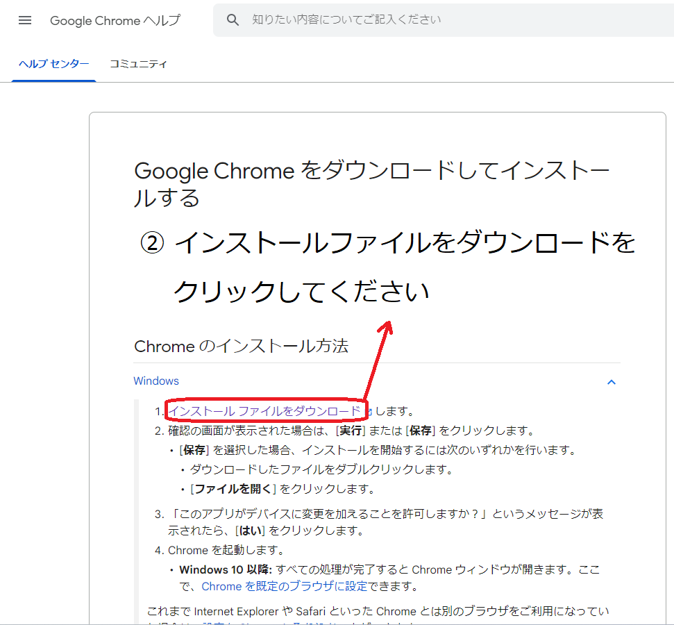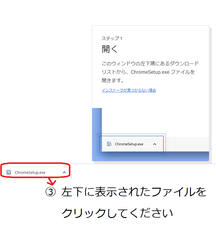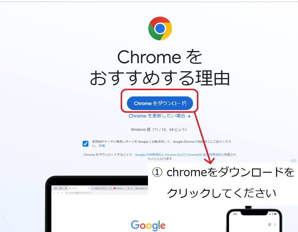 以下は、WindowsのGooglechromeダウンロード手順となります。 ご参照ください。
