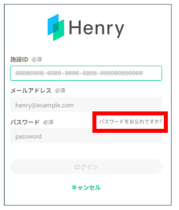 Henryのログイン画面上部に「ログインに失敗しました」と表示されているか確認します。