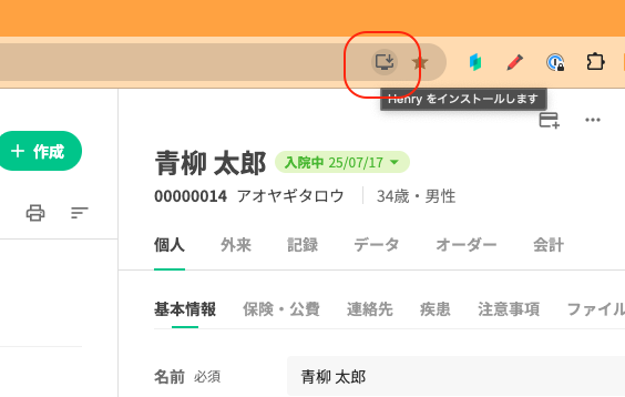 ChormeでHenryを使用している場合、アドレスバーの右にアイコンやポップアップが表示され、「インストールしますか?」と聞かれることがあります。(添付画像の赤枠部)
