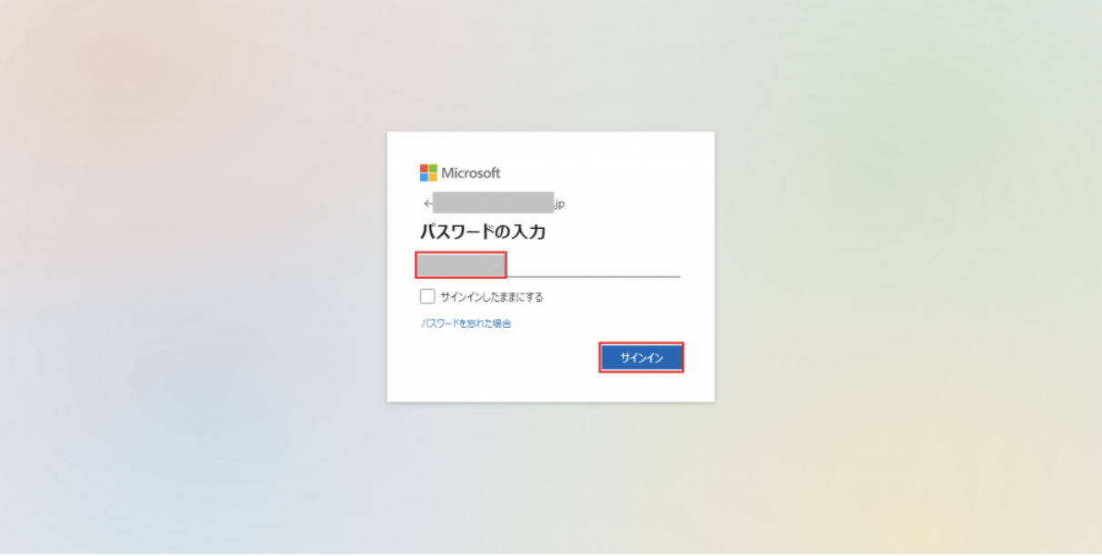 パスワードを入力して、【サインイン】ボタンを押しましょう。