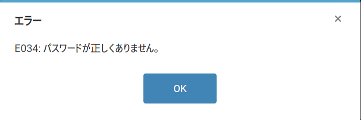 アップロードリンク及びダウンロードリンクのパスワードが誤っていた場合、下記のアラートが表示されます。