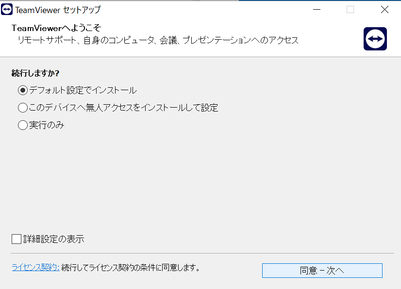 4.ダウンロードした「TeamViewer_Setup_x64.exe」を実行します。