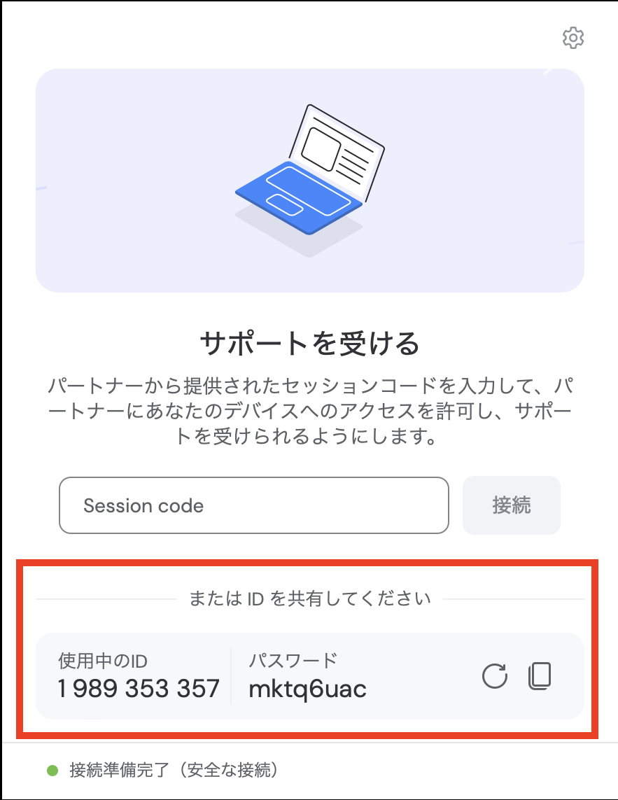Henryスタッフにて当該IDとパスワードを入力の上、貴PCに接続を開始します