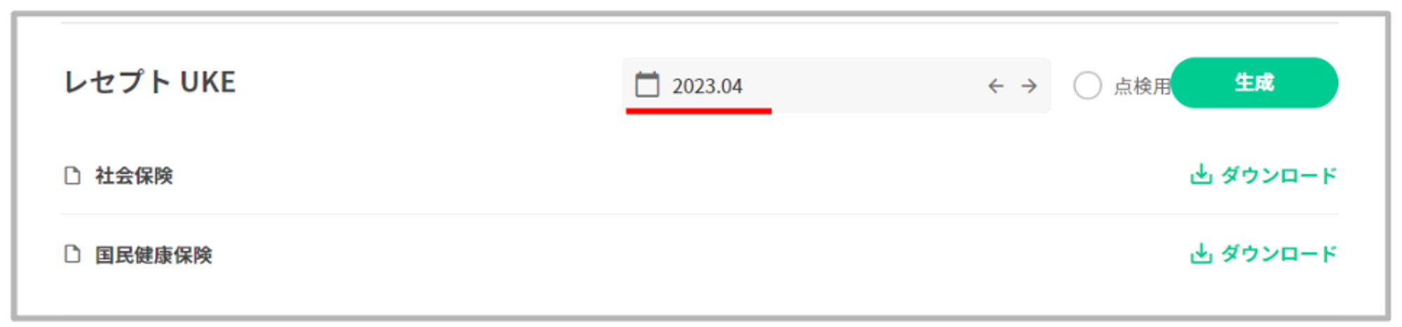 レセプトUKE作成時に選択した診療請求年月のコスカレが対象です。
